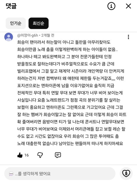 2개월전이면 탈퇴전에 쓰인건데 늦덕이라 모르는데 뭔일있었어? 막활동때도 희승이 무대동선수납 심하다고 생각했거든 난 탈퇴이유중에 하나라고 생각해서..