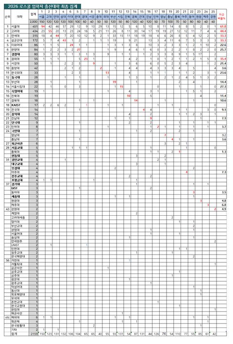 2026년 로스쿨 입학자 출신대학 현황
