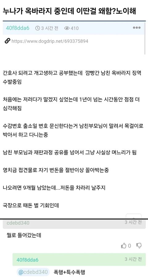 퍼올라면 끝까지 다 퍼오던가.. 남자가 감방 간 이유가 여자친구 괴롭히던 상사 패서 감방간거잖어