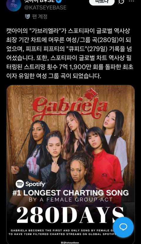 해외 반응은 있는 거 같던데 ㅋ 하투하 루드 스포티파이 글로벌 차트에 차트인한 거 보면 ㅋㅋ