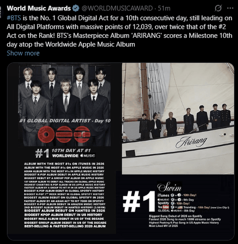 방탄 지구 신기록 달성함