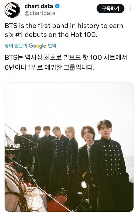 빌보드 핫 100 데뷔 1위 7회로 최초 기록.