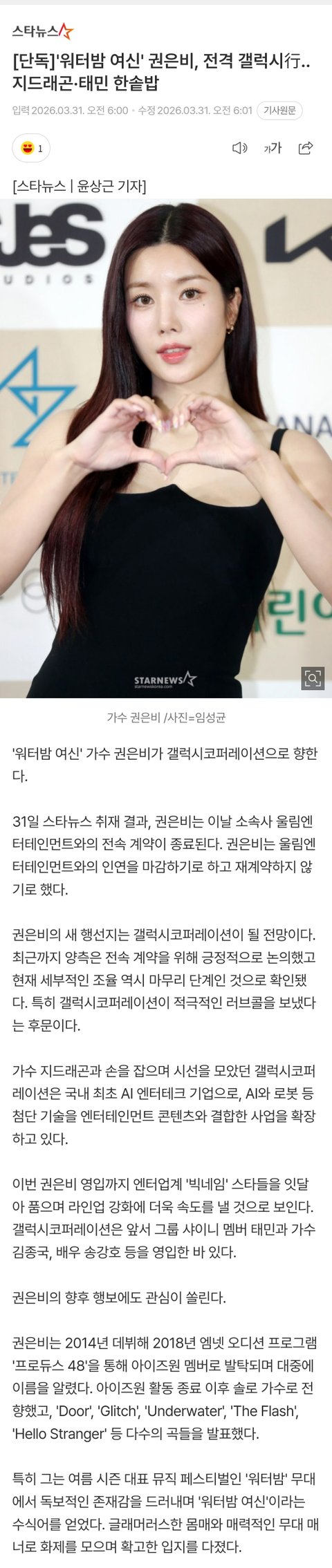 [단독]'워터밤 여신' 권은비, 전격 갤럭시行..지드래곤·태민 한솥밥