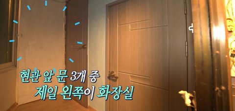 그리고 현관 앞 문 3개 중 제일 왼쪽이 화장실인데