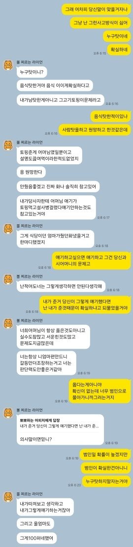 사람 돌아버리게 만드는 대화방식. 남편이 항상 내가 나쁘다는식으로 몰아가는데 아기가 8일째설사하는중이고 제가병원을 5번횟수로 다녀왔습니다.지난주 토요일 어머님이 갈은 고기를 볶아서 이거 애기밥에 섞어주라. 주고 가셨고 항상 14개월 아기고 사실 저희는 시판이유식만 계속 같은브랜드로 몇개월째 먹여왔어요. 그리고 분유외에 먹은거 항상먹는 음식였고 과일조금 주고있었고요.