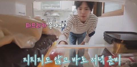 뭐 흔한 직장인의 퇴근 후 모습이 아닐까 싶음(나 역시...)반면 쉬지 않고 바로 저녁 준비하는 박보검