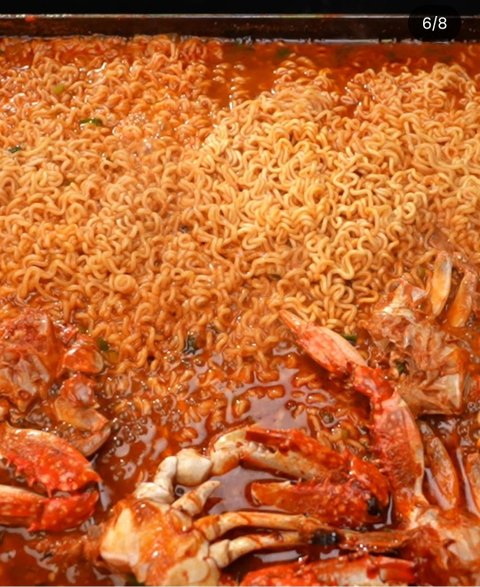 그렇게 구운 게장이 있는 철판에 물을 붓고 적정량의 라면을 일단 넣음