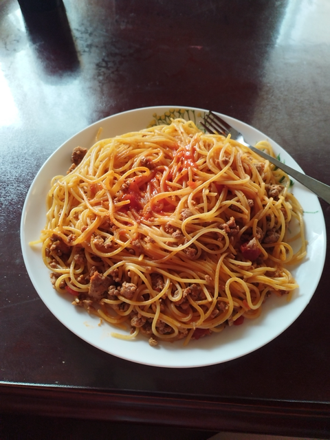 맛있어 보이는 토마토 소고기 스파게티네요