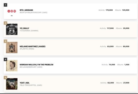 빌보드 200차트 다음주도 1위예측