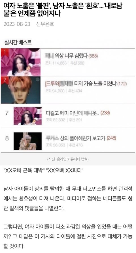 진짜 궁금한게 남이 뭘입든 니가 뭔상관인거임? 어차피 넌 사이즈 맞지도 않아서 평생 팔다리 한짝 못넣어볼 옷 아님...? ㅋㅋㅋㅋㅋㅋㅋㅋㅋㅋㅋㅋㅋㅋㅋㅋㅋ 누가 너보고 입으라고 강요한것도 아니고 애초에 입지도 못하실 옷인데 뭐가 그리 화가나셔서 쒸익쒸익대면서 여돌 옷에 시애미질이누
