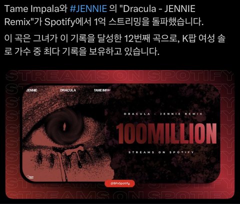 제니 드라큘라 리믹스 오늘 스포티 폭등함 ㄷㄷ