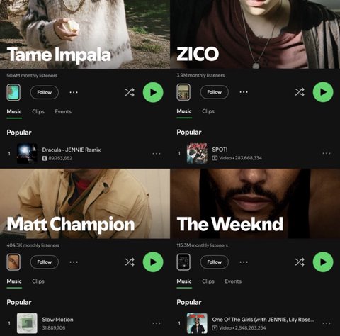 제니랑 콜라보하는 가수마다 그 가수 인기 1위곡됨