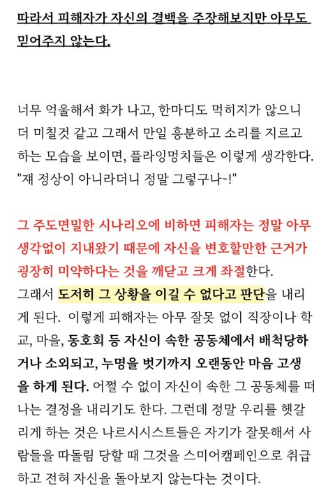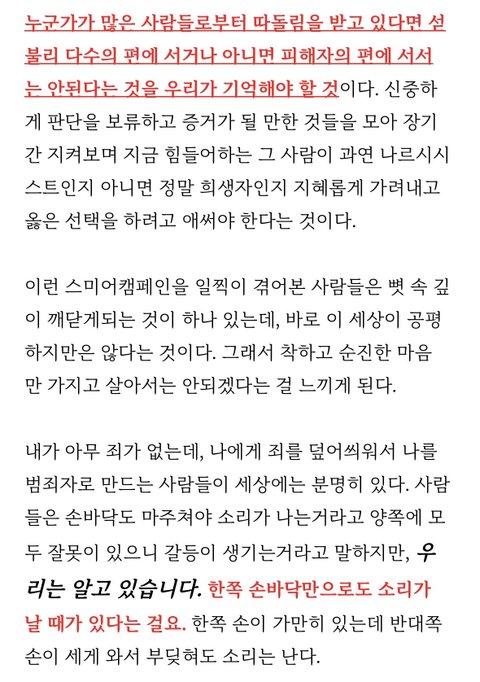 스미어캠페인이 뭔지 몰라서 찾아봤는데 아무것도 모르는 경력없는 신입이 당하기 딱 좋구나.. 그리고 알게된것은 자기자신도 모르게 이런 사람이 될수있다는것. 다수와 몰려다니는 무리를 조심할 것