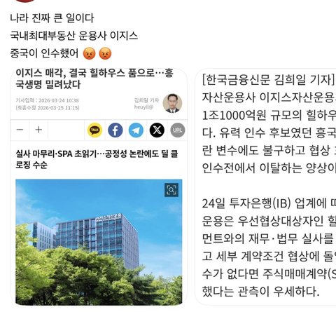 중국이 우리나라 부동산 기업 샀다 망함
