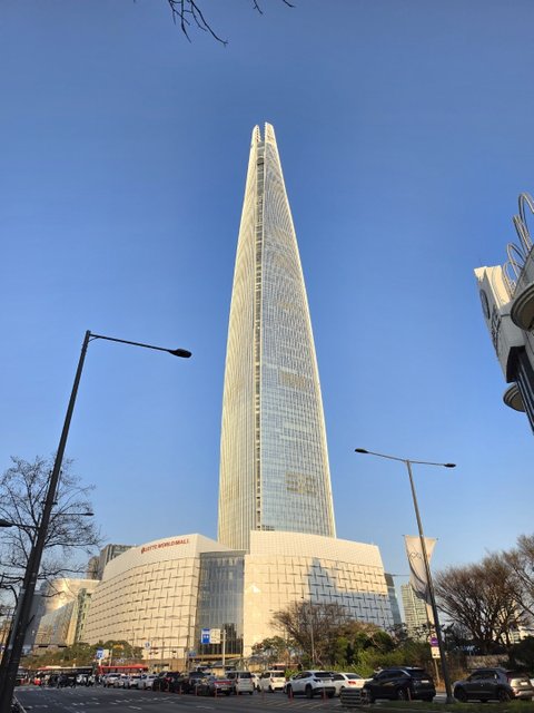 (사진2 설명) 롯데월드타워(지상 123층 초고층 빌딩, 세계에서 6번째로 높은 마천루(摩天樓, Skyscraper), 위치: 서울시 송파구 올림픽로 300) <(원판 사진 resize) 촬영정보: 노출시간 1/4538s, 초점거리 23mm, 조리개 f/1.4, 촬영감도 ISO 64, 노출 biasing(바이어싱, Q·point(동작점) 설정) 0.0ev, 스폿(spot)측광, samsung Galaxy S26 Ultra 와이드 렌즈(wide lens, 표준 렌즈보다 초점 거리가 짧아 화각이 넓은 렌즈) 23mm 사용, 2026.04.02(목) 최대우 촬영>