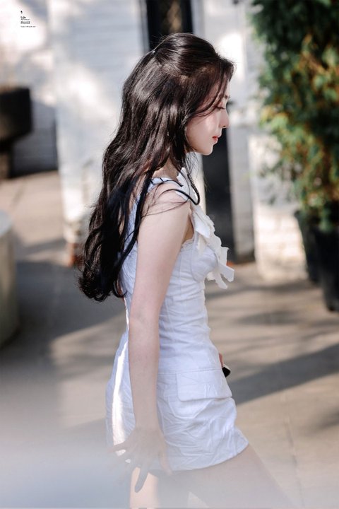 흰색 미니 드레스에 은은한 메컵 반묶음....