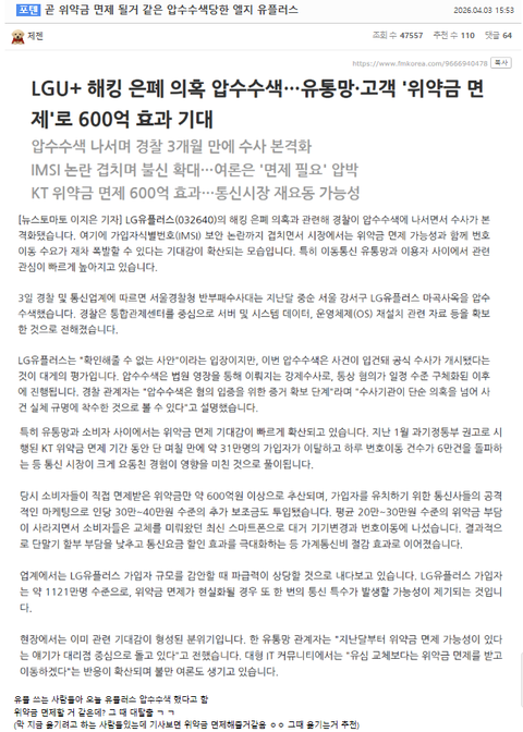 곧 위약금 면제 될거 같은 압수수색당한 엘지 유플러스