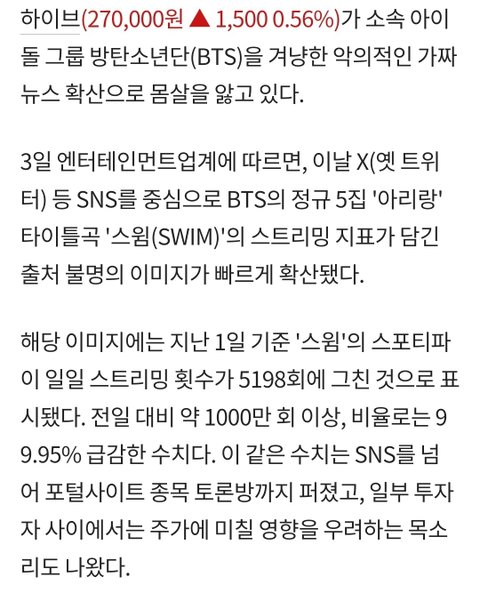 주식에 영향까지 미쳤다면 ㄹㅇ민사감인데 겁도 없노 방탄 몸값ㄷㄷㄷ