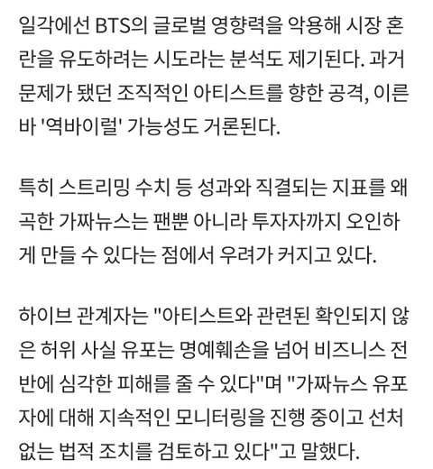 방탄 가짜뉴스에 경고