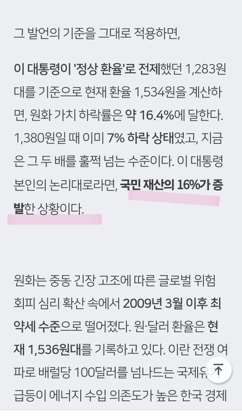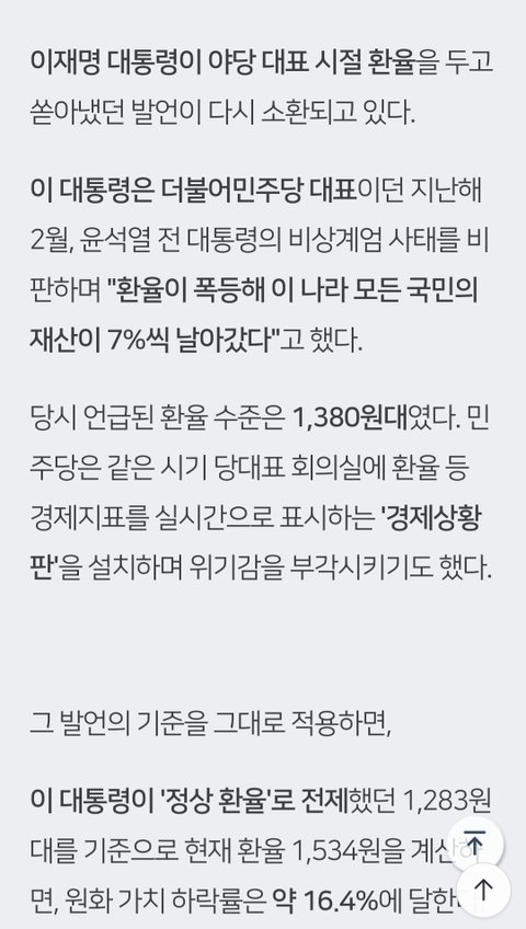 아니 근데 이재명이 저 말 했을때는 윤석열이 일을 쳐 안하고 못해서 환율 올라간거고 지금은 스바ㅋㅋ 미국이 중동 전쟁 지원하고 개짓거리 해서 원화 가치 떨어지고 있는거자너 다른 나라 통화 가치도 전체적으로 떨어지고 있음. 코스피 5천 6천을 달성해도 이딴 뻘소리가 올라오네 뭐 그 정도 지능 됐으면 선동도 안당했겠지