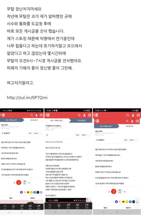 채증: 가해자들의 아이디, 게시물 링크, 대화 내용 등을 PDF나 화면 캡처로 저장하세요.
