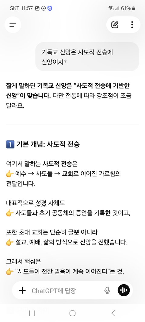 챗 gpt에 기독교 신앙은 사도적 전승에 신앙인지