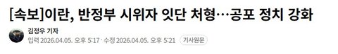 이란이 시위자 처형시킨다네요 ㄷ ㄷ ㄷ