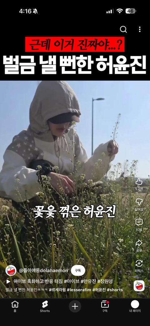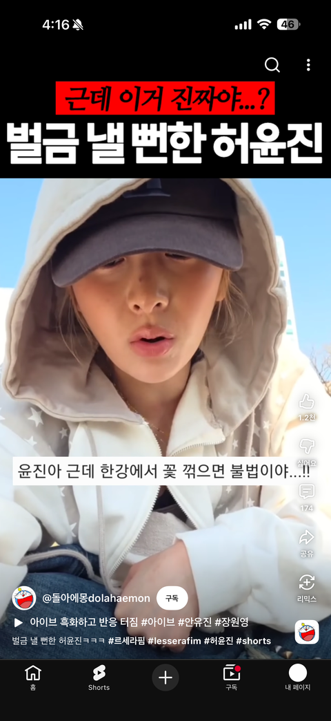 댓글에 팬이 한강에서 꽃 꺾으면 불법이라고 하니깐 한강에서 불법이냐고 연신 사과함