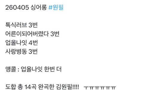 (와 이게 찐으로 대박인데? 밴드라이브로 4곡 14번 불러줬으면 진짜 대박 오프다)