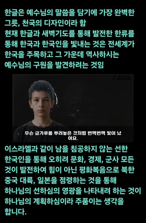 한글은 예수님의 말씀을 담기에 가장 완벽한 그릇, 천국의 디자인이라 함
