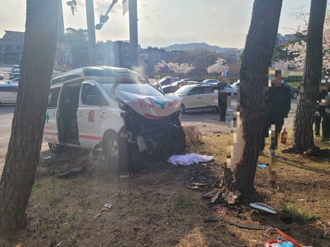 오늘(6일) 오후 4시 53분쯤 원주시 무실동의 한 사거리에서 27세 남성이 몰던 사설 구급차가 승용차와 부딪쳤습니다.