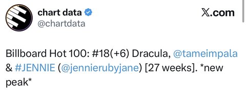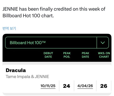 ㅈㄴ 축하해 제니야 무홍보 급발매 곡으로 역사를 쓰는구나…. 심지어 이건 저번주 성적이라 이번에 업데이트 되면 상위20위권까지 갈 거로 예상 중…미침 + ㅋㅋㅋㅋㅋㅋㅋㅋㅋㅋ 올라서 18위 걍 미친듯