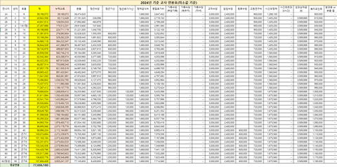 성과금도 S 30%, A 50%, B 20% 비율로 받는데 저 표에서는 교직 기간 내내 B를 받는 전제거든요.