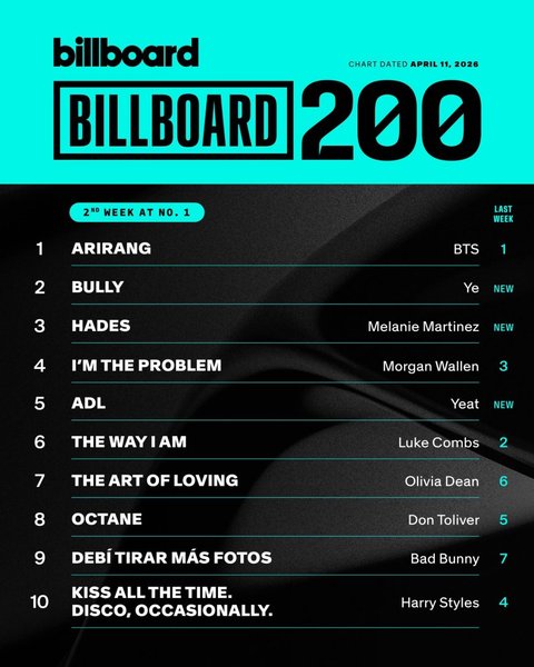 빌보드 앨범 200차트 2주연속 1위 ^^