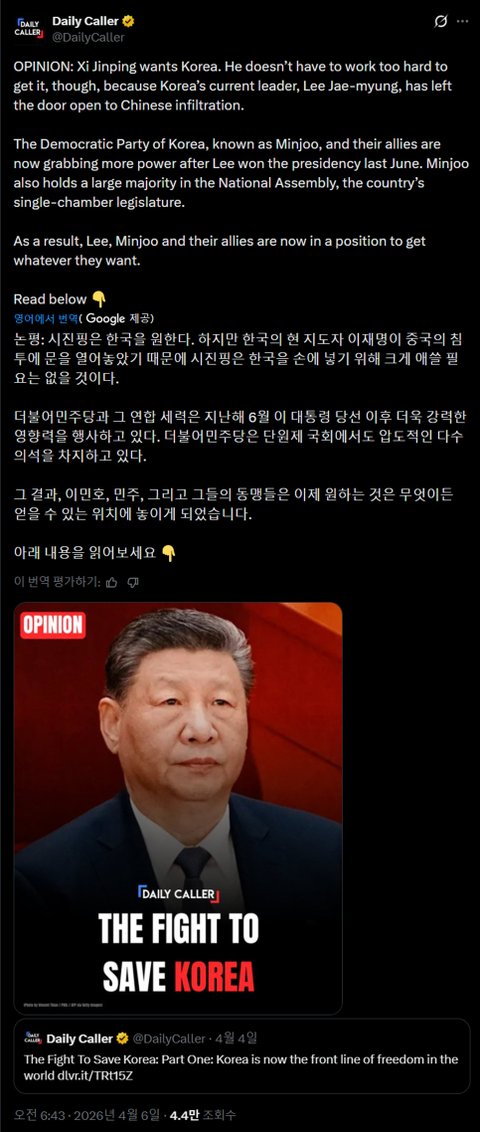 미국언론: 이재명은 대한민국을 중국에 팔아먹고있다