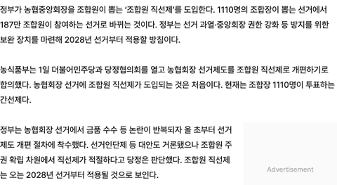 농협회장 선거, 187만 조합원이 직접 뽑는 시대 온다네요
