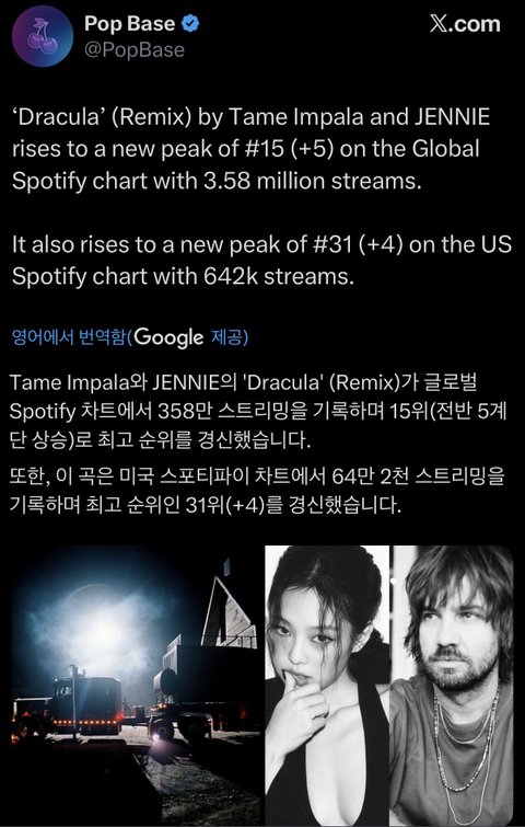 제니 드라큘라 리믹스 이번주에 빌보드 핫백 18위함 ㄷㄷ