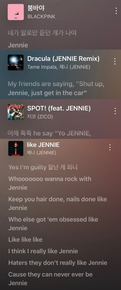 제니 이름 들어가는 곡은 다 성공하나봐