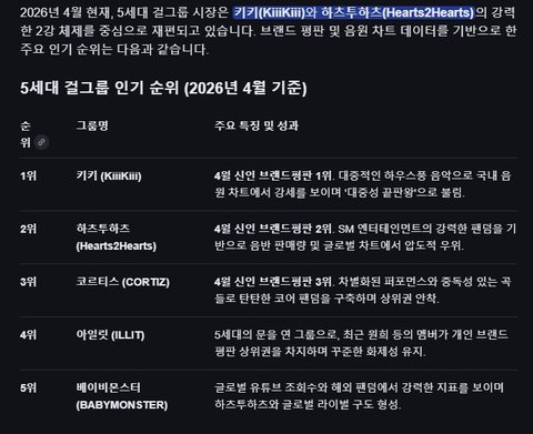 AI가 알려주는 5세대 걸그룹 인기 순위