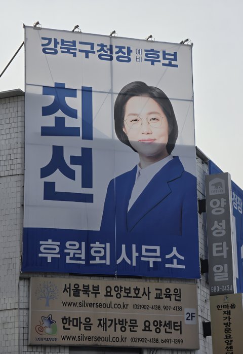 (사진2 설명) 최선 강북구청장 예비 후보 <(원판 사진 resize) 촬영정보: 노출시간 1/3255s, 초점거리 115mm, 조리개 f/2.9, 촬영감도 ISO 50, 노출 biasing(바이어싱, Q·point(동작점) 설정) 0.0ev, 스폿(spot)측광, samsung Galaxy S26 Ultra 망원 렌즈(telephoto lens, 표준 렌즈보다 초점 거리가 길어 화각이 좁은 렌즈) 115mm 사용, 2026.04.03(금) 최대우 촬영>