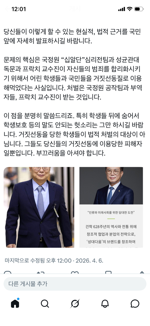 국정원 “십알단” 심리전팀의 여론조작과 집단스토킹 사주범죄와 성균관대 독문과 프락치 교수진의 대국민 사기극에 대한 고발.
