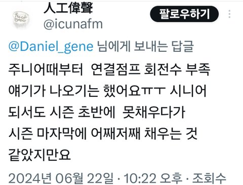 시즌 마지막에 어째저째 채우는 것 같았지만요