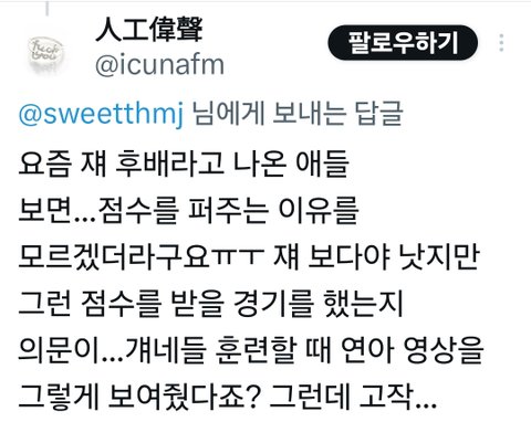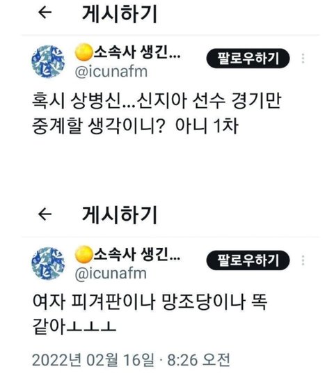 혹시 상병신 신지아 선수 경기만 중계할 생각이니?