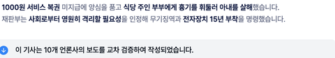 현금 결제하면 주는 1000원짜리 서비스 복권을 못 받았다고 식당 주인 부부한테 흉기를 휘두른 거잖아요.