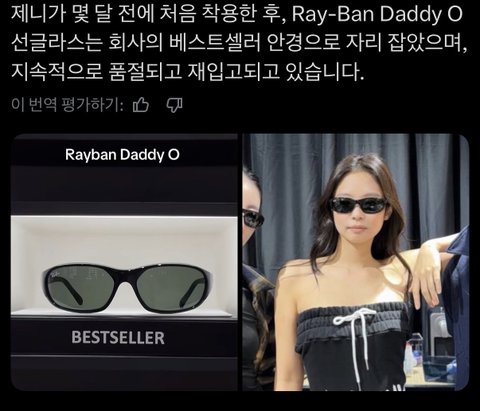 제니 아이웨어 1티어 레이벤 글로벌엠버서더됨