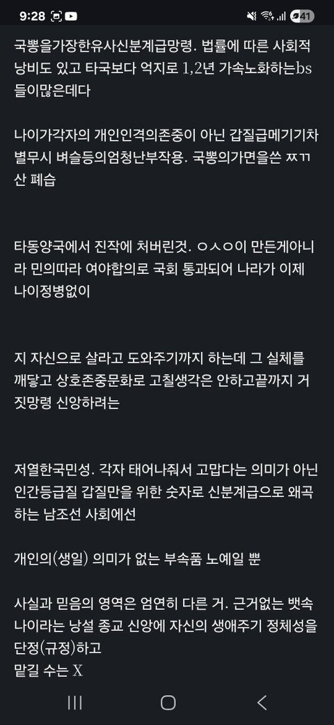 최소 세는나이나 조선나이는 가짜니까 개선됐으면 좋겠는데 세는나이를 연나이로 왜곡한다던지 아직도 강요하는 자들이 있나 보군여