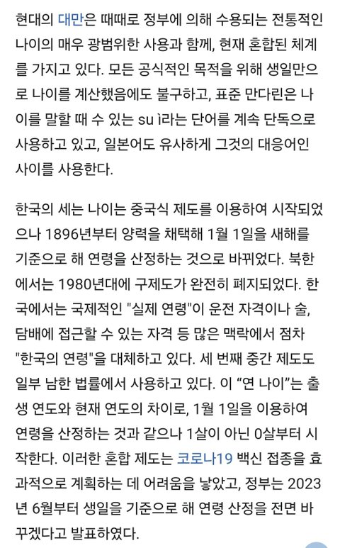 솔직히 한국나이 그건 한국산이 아니라 대륙에서 유래된 음력 세는나이의 파생품이고 북한마저 버린지 오래인데
