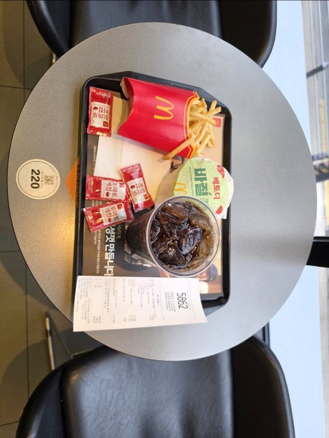 (사진5 설명) 오늘(4월10일) 저녁식사는 트럼프 대통령이 좋아하는 버거로 특별하게! 맥도날드 매장내 화장실에는 선반이 특별하게 설치되어 있어서 소지품을 올려놓고 사용하기에 매우 편했음. <(원판 사진 resize) 촬영정보: 노출시간 1/40s, 초점거리 13mm, 조리개 f/1.9, 촬영감도 ISO 800, 노출 biasing(바이어싱, Q·point(동작점) 설정) 0.0ev, 스폿(spot)측광, 디지털 확대/축소 1.0, samsung Galaxy S26 Ultra 와이드 렌즈(wide lens, 표준 렌즈보다 초점 거리가 짧아 화각이 넓은 렌즈) 13mm 사용, 2026.04.10(금) 최대우 촬영>