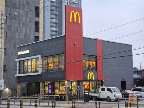 (사진6 설명) 오늘(4월10일) 저녁식사는 트럼프 대통령이 좋아하는 버거로 특별하게! 맥도날드 매장 외부 풍경촬영. <(원판 사진 resize) 촬영정보: 노출시간 1/120s, 초점거리 69mm, 조리개 f/2.4, 촬영감도 ISO 400, 노출 biasing(바이어싱, Q·point(동작점) 설정) 0.0ev, 중앙부 중점 측광, 디지털 확대/축소 1.0, samsung Galaxy S26 Ultra 표준 렌즈(인간의 눈과 가장 비슷한 화각을 갖는 렌즈) 69mm 사용, 2026.04.10(금) 최대우 촬영>