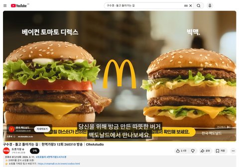 (사진7 설명) 오늘(4월10일) 저녁식사는 트럼프 대통령이 좋아하는 버거로 특별하게! 맥도날드 매장 외부 풍경촬영. <(원판 사진 resize) 촬영정보: 노출시간 1/120s, 초점거리 69mm, 조리개 f/2.4, 촬영감도 ISO 400, 노출 biasing(바이어싱, Q·point(동작점) 설정) 0.0ev, 중앙부 중점 측광, 디지털 확대/축소 1.0, samsung Galaxy S26 Ultra 표준 렌즈(인간의 눈과 가장 비슷한 화각을 갖는 렌즈) 69mm 사용, 2026.04.10(금) 최대우 촬영>